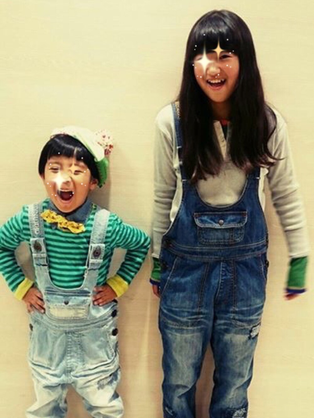 全くコーデが考えられないけどフォトコン撮影行って来たー。 偶然お揃いのサロペ着てたから一緒に写真撮ってもらいましたー₍˄·͈༝·͈˄₎◞ ̑̑ෆ⃛ 小さい子のサロペ姿可愛い過ぎる💗💗