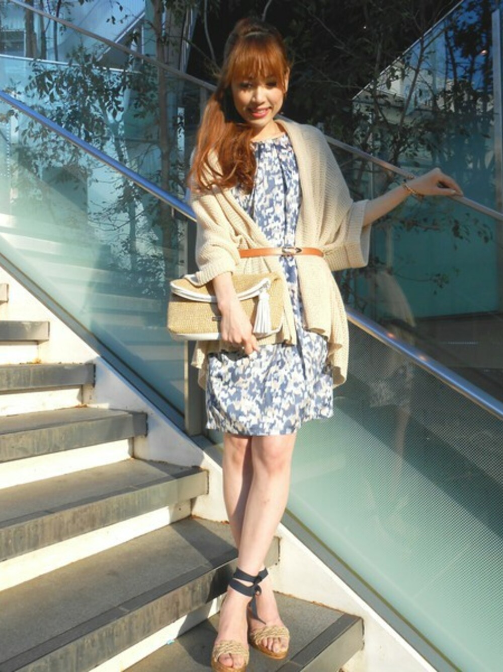 トレンド感を感じさせるボカシ柄ワンピースを主役にした大人のこなれスタイル。 柄物アイテムも大人なカラーコーディネートですっきり爽やかに♪ 少し肩の力が抜けたラフなコーディネートで、お出かけ気分を盛り上げていきましょう!
