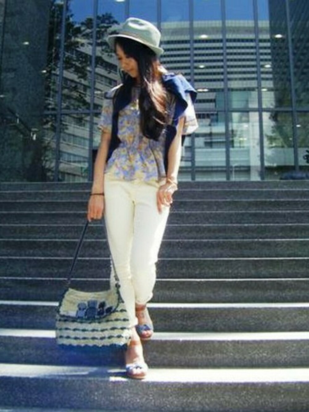 今年イチオシのボタニカルフラワーのブラウスにカラーボトムを合わせた、涼しげな印象の大人カジュアル。 トレンドの「フラワープリント」&「ペプラムシルエット」でオシャレ度UP! ちょっぴり「リゾート」を意識した小物使いで、周りに差がつくシティスタイルの完成です♪