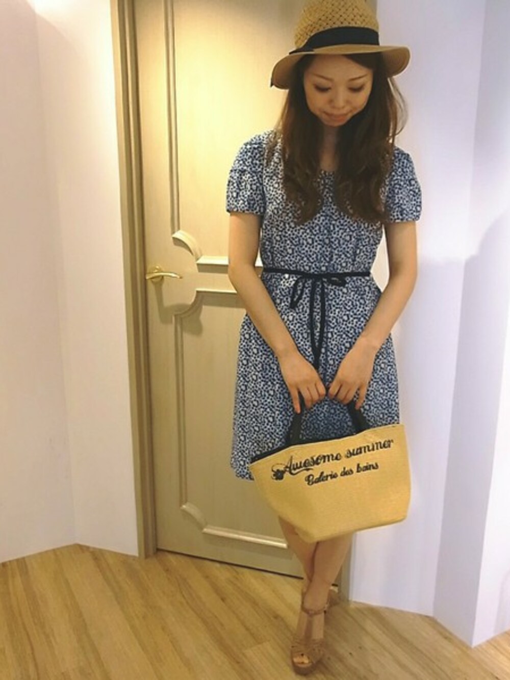 爽やかなカラーのマリン柄が印象的なワンピースに夏小物を合わせて、リゾート感を出してみました☆ シティでも気軽にリゾートムードを高められるので、夏のお出かけにぴったりですね! 女性らしいフェミニンディティールがつまったワンピースはシルエットがキレイなので、通勤に!お出かけに!と幅広く活躍してくれそうです♪ ナチュラルテイストの小物もカラーを統一することで、大人っぽくスッキリ見えます。