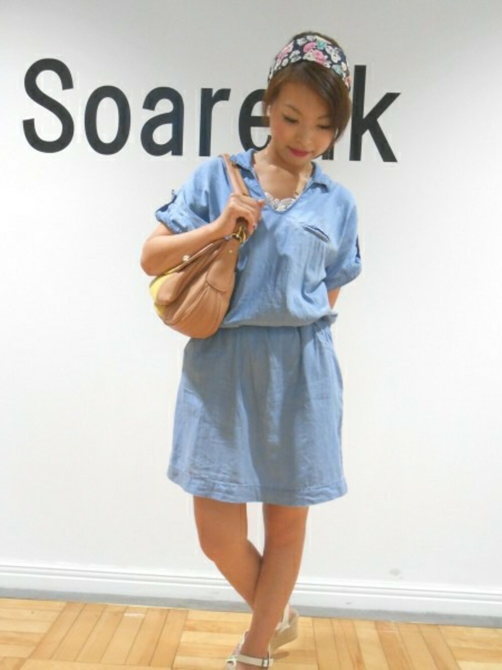 Soareakのワンピース「デニムスキッパーワンピース」を使ったコーディネート