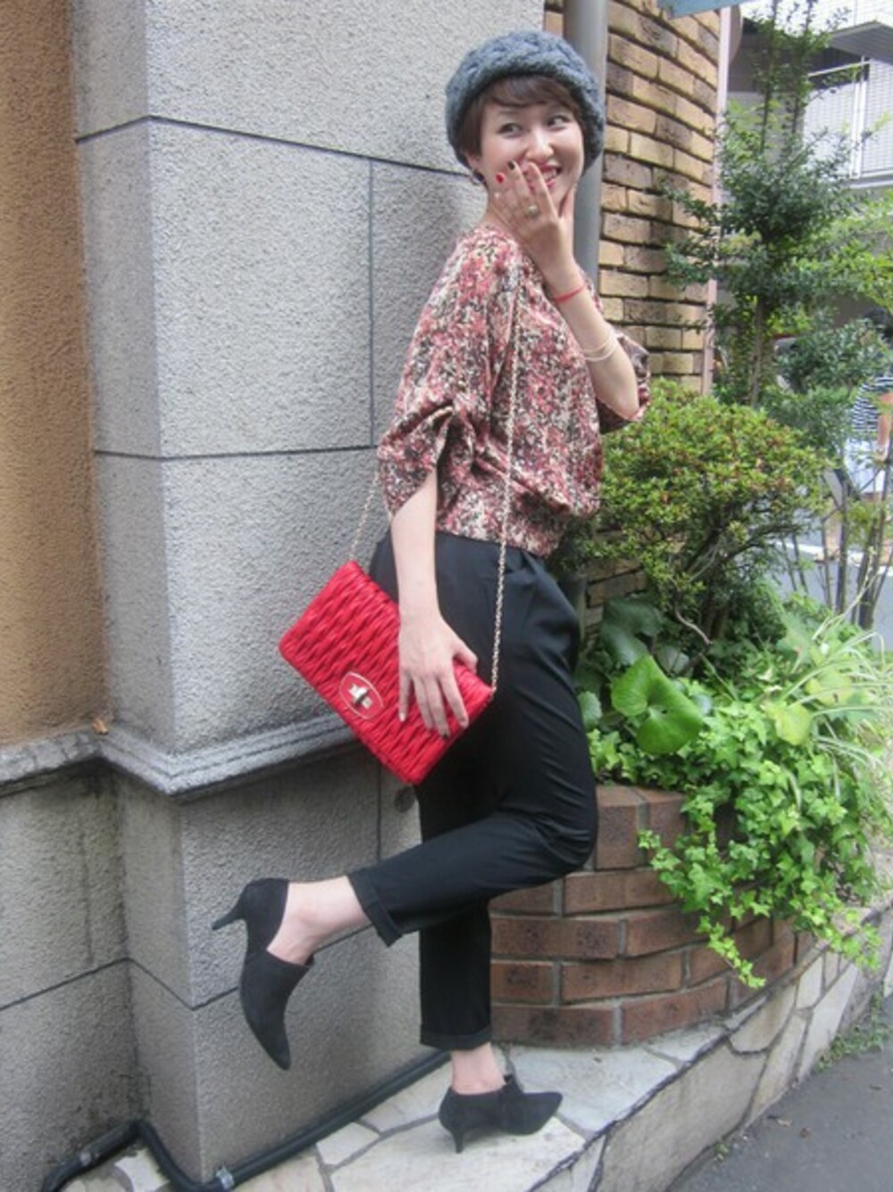 手描き風のフラワープリントが印象的なブラウスを主役にした、お出かけが楽しくなる秋コーデ♪♪ トップスはゆるやかなラインなので、シルエットのキレイな美脚パンツを合わせてバランスをとっています。 ナチュラルな風合いのニットベレーをONして抜け感をプラスしました。 デザイン性の高いBAGは鮮やかなカラーのものを選んでスタイリングのアクセントに。 ☆☆☆ Soareak POP UP STORE ルミネ新宿2 9/9(月)までの期間限定です☆☆☆