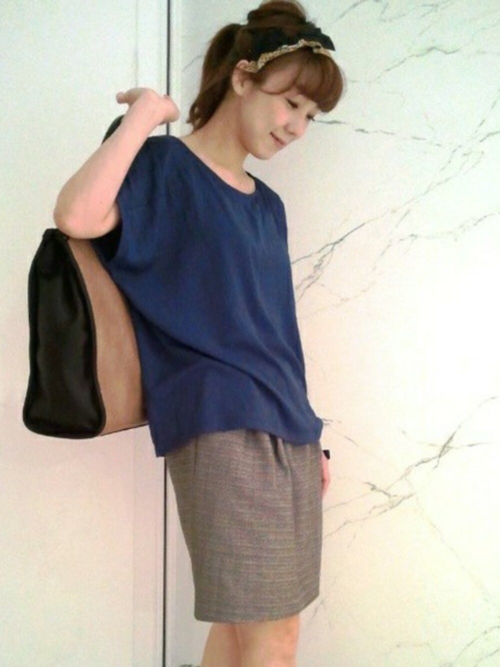 今年らしいリラックス感のあるスタイリングを大人っぽく表現しました。 ゆるっとしたシルエットのドルマンブラウスに、秋素材のコクーンスカートを合わせてスッキリと。 人気BAGブランド【DANIELLE NICOLE】のバイカラートートが、さらにトレンド感をUPさせてくれます。 クリーンな大人のリラックススタイルは通勤にもオススメです。