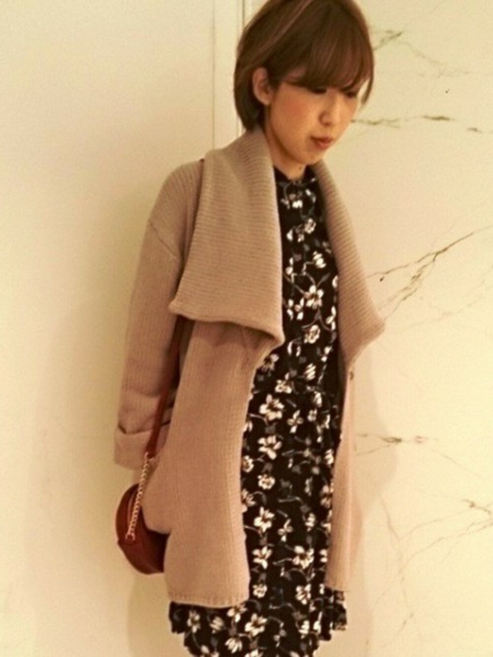 秋のお出かけを楽しむ、大人のお出かけスタイル♪ コンパクトな襟がクラシカルな雰囲気のワンピースは、シックなボタニカル柄が印象的です。 ふんわりとしたブークレ素材が心地良いニットガウンは、ワンピースとは対照的な大きめな襟がポイント。 軽くて温かなブークレガウンは、柔らかな感触も魅力です。 女性らしいシルエットのワンピースと、ゆとりのあるアウターのバランス感が今年らしい着こなしの鍵に。