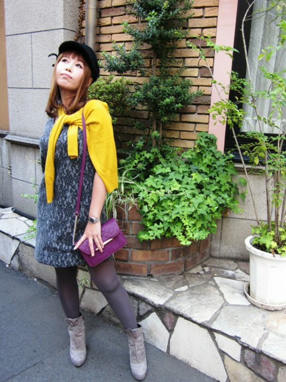 繊細なレースが引き立つ上品ワンピースをメインにした、大人の遊び心あるスタイリング。 ワンピースは、レースとウール生地を針作業だけで張り合わせる「ニードルパンチ」という技術で丁寧に仕上げられた、Soareak別注のこだわり素材を使用しています。 ワンピースのデザインを引き立てるため、カーディガンはシンプルなものをチョイス。 カラーアクセントで、ほんのり遊び心をプラスしています。 【DANIELLE NICOLE】のキルティングポシェットは、人気のパープルで視線をひとり占め♪