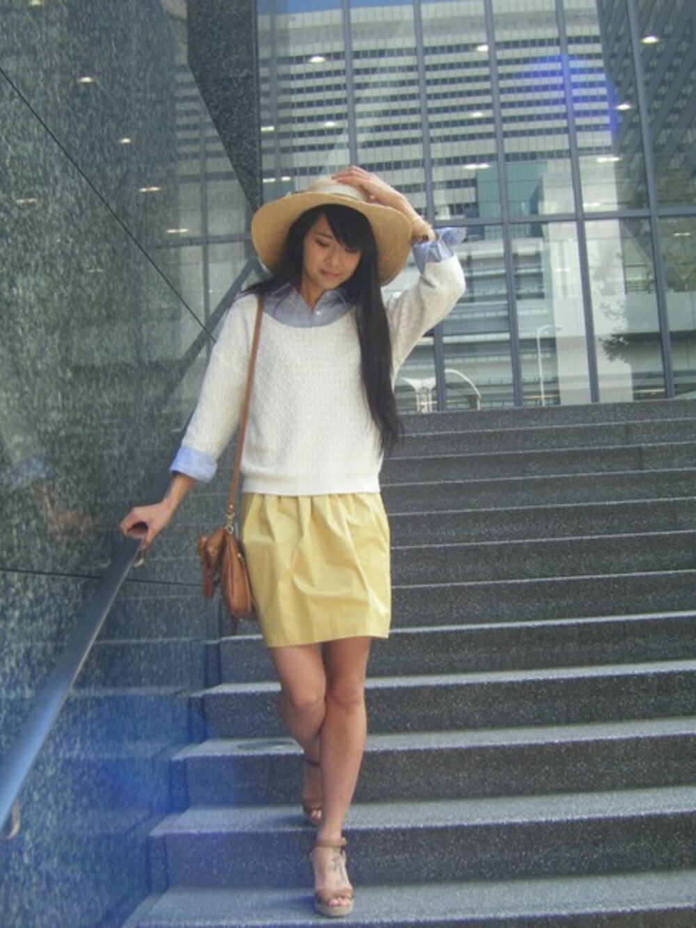 パッと目を引くまぶしいレモンイエローのスカートで、Soareakらしく大人ガーリーに仕上げてみました♪ とろみ感が心地良い柄編みニットに、爽やかなシャツを合わせた旬なスタイル。