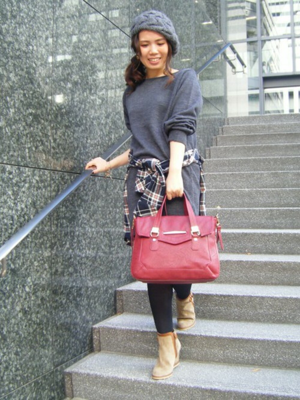 シンプルなニットワンピースにトレンドのチャックシャツを腰に巻いた、今年らしいコーディネート♪ かっちりめなバッグやシューズを合わせて、こなれた印象のカジュアルスタイルに。 【DANIELLE NICOLE】のバッグをカラーアクセントに効かせました。
