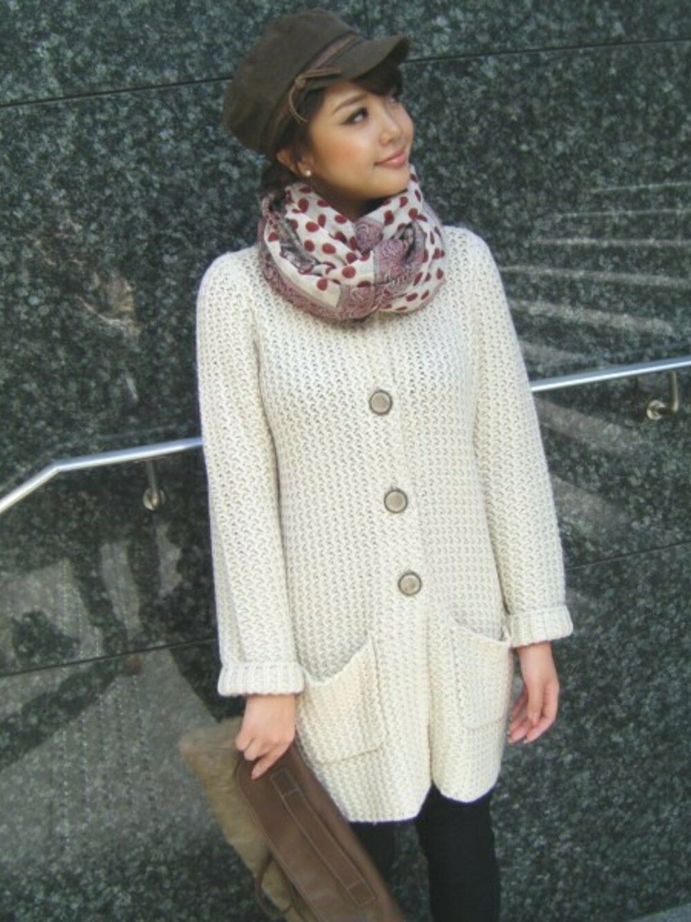 人気のざっくりめニットコートで仕上げる、大人のフェミニンカジュアル♪ 上品な印象になるノーカラー、すっきりラインとアンティーク風のボタン…とディティール感たっぷり。 シンプルなカジュアルスタイルに華を持たせるインポートの小物たちをトッピングして、ワンランク上のこなれスタイルに♪♪