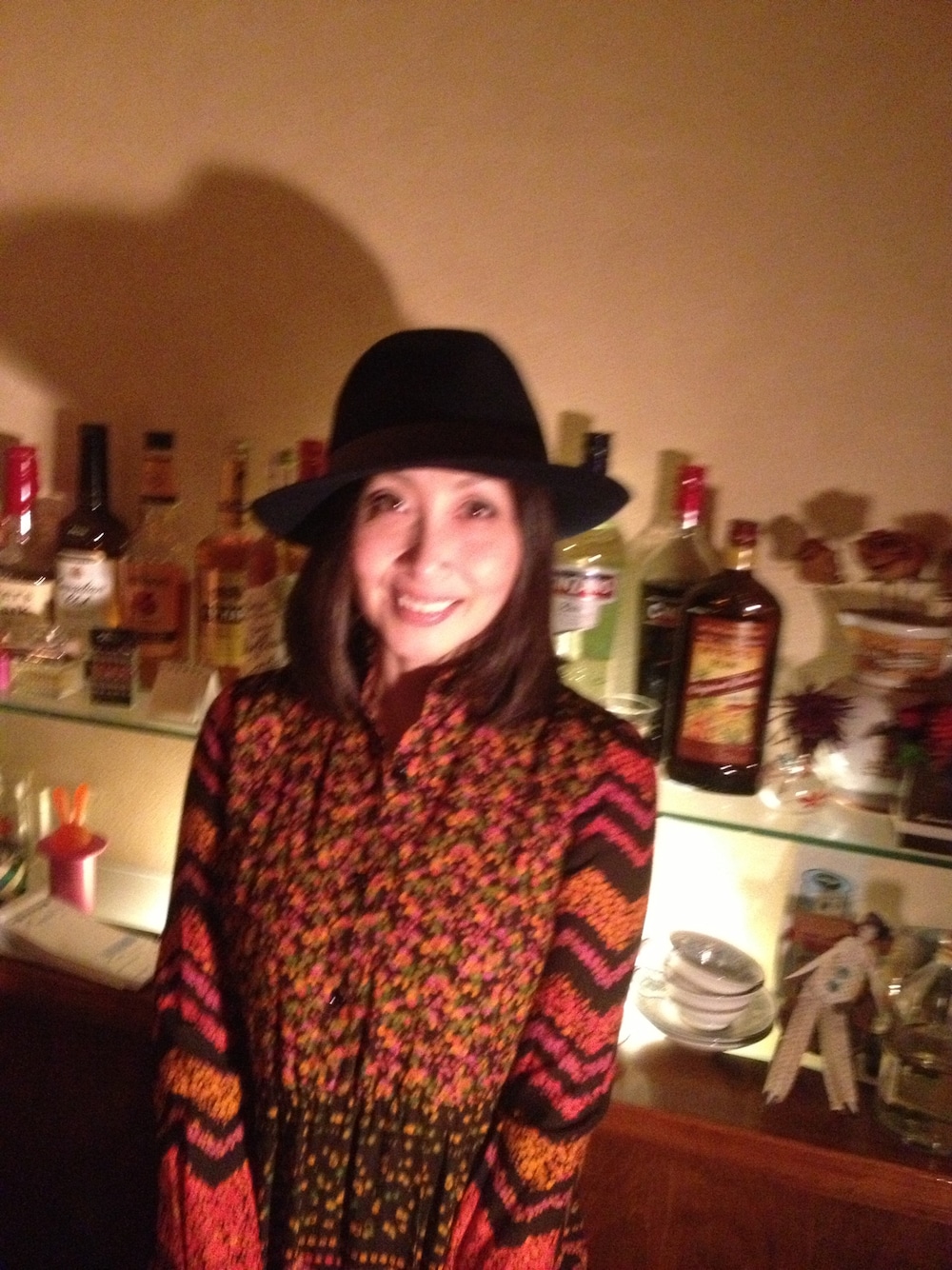 お客様がご自分のボルサリーノを私に被らせてくれました。 リリプティさんのワンピに合うわ〜。 私もボルサリーノ欲しいな。
