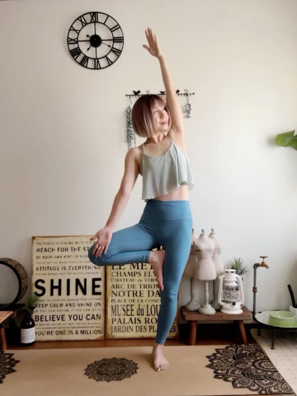 𝓮𝓽𝓼𝓾*のキャミソール「[Yomoment] ストレッチ フリルヨガウエア メッシュ トップス 吸汗速乾 キャミソール カップ付き ペールターコイズ S」を使ったコーディネート