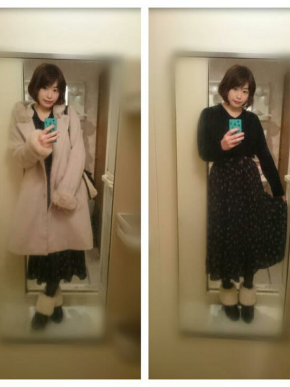 おはよーございます✨😊 ご訪問ありがとうございます😆💕✨ 今日も朝はキンキンに寒いー🌁⛄🌁 もこもこファーだらけで完全防備😼✨ 一見、ガーリーですがコートを脱ぐと、オールブラックで甘さ控えめに☺