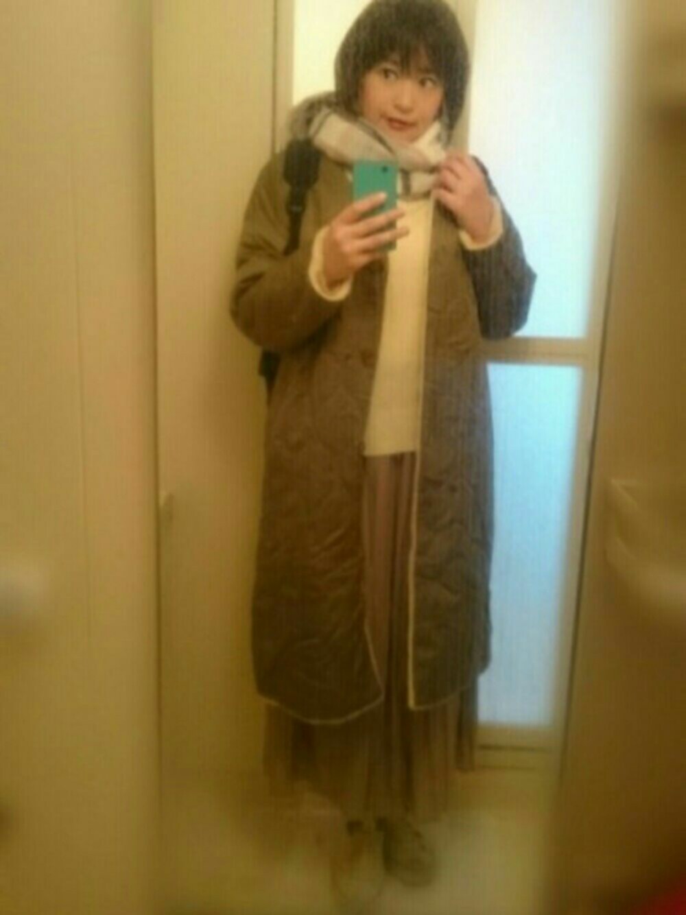 こんばんは🎵 いつもありがとうございます😊 今日は、カジュアルなアウターにフェミニンなスカートを合わせた、テイストMIXコーデです☺ 全体的に淡いトーンで優しげに🍀