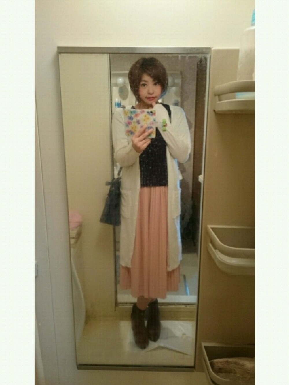 おはようございます( ´ ▽ ` )ノ ロングカーデ×ミモレ丈スカートのIラインシルエットはスタイル良く見えて良いですね◎ なんとなく男子受けしそうなコーデだったので、萌え袖+ぶりっ子ポーズしてみました。 腹立ちますね、殴ってください、ハイ(-_-;)