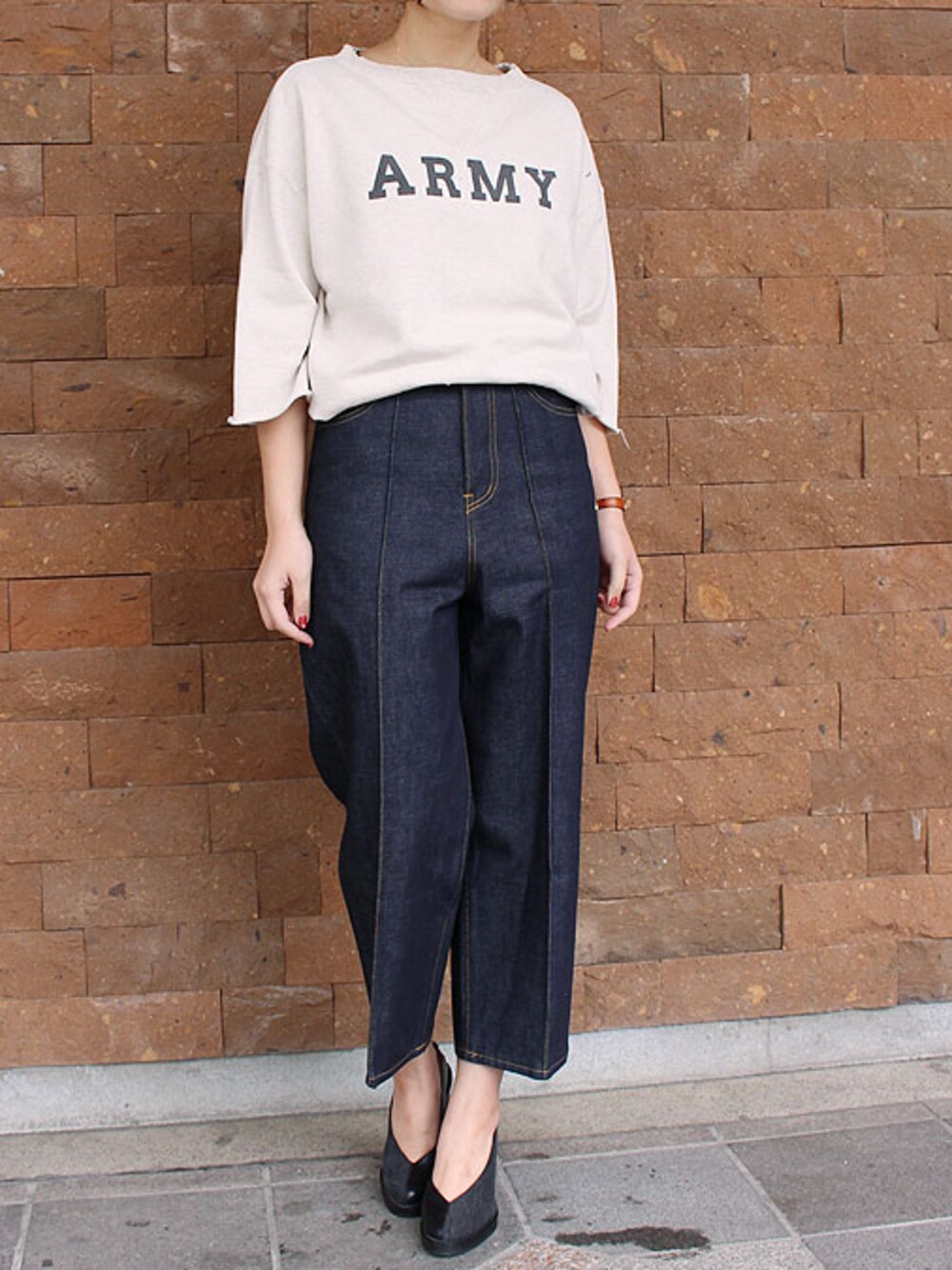 タックの効いたクロップド丈のデニムパンツ。 ストンと落ちるシルエットをキープしてくれるハリのあるデニム素材が◎ ちらっと覗く足首をきゅっと見せてくれ、バランスの取りやすい丈感。 ハイウエストで履くシルエットなので、トップスインやショートボトムを合わせるのがおすすめです。 デニムパンツ [OKIRAKU/オキラク] 販売価格: 20,520円 (税込)