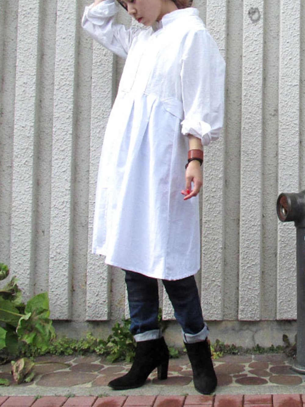 usedのボタンダウンシャツを使用したワンピース。 ウエストから下は製品の生地を使用し、Aラインに広がるシルエットに。 1枚ではもちろんばさっと羽織ってもサマになります。 バックのダーツデザインも人気のタイプで今季も活躍間違いナシ♪ circa make back gather 2way one-piece [77circa/ナナナナサーカ] 販売価格: 28,080円 (税込)