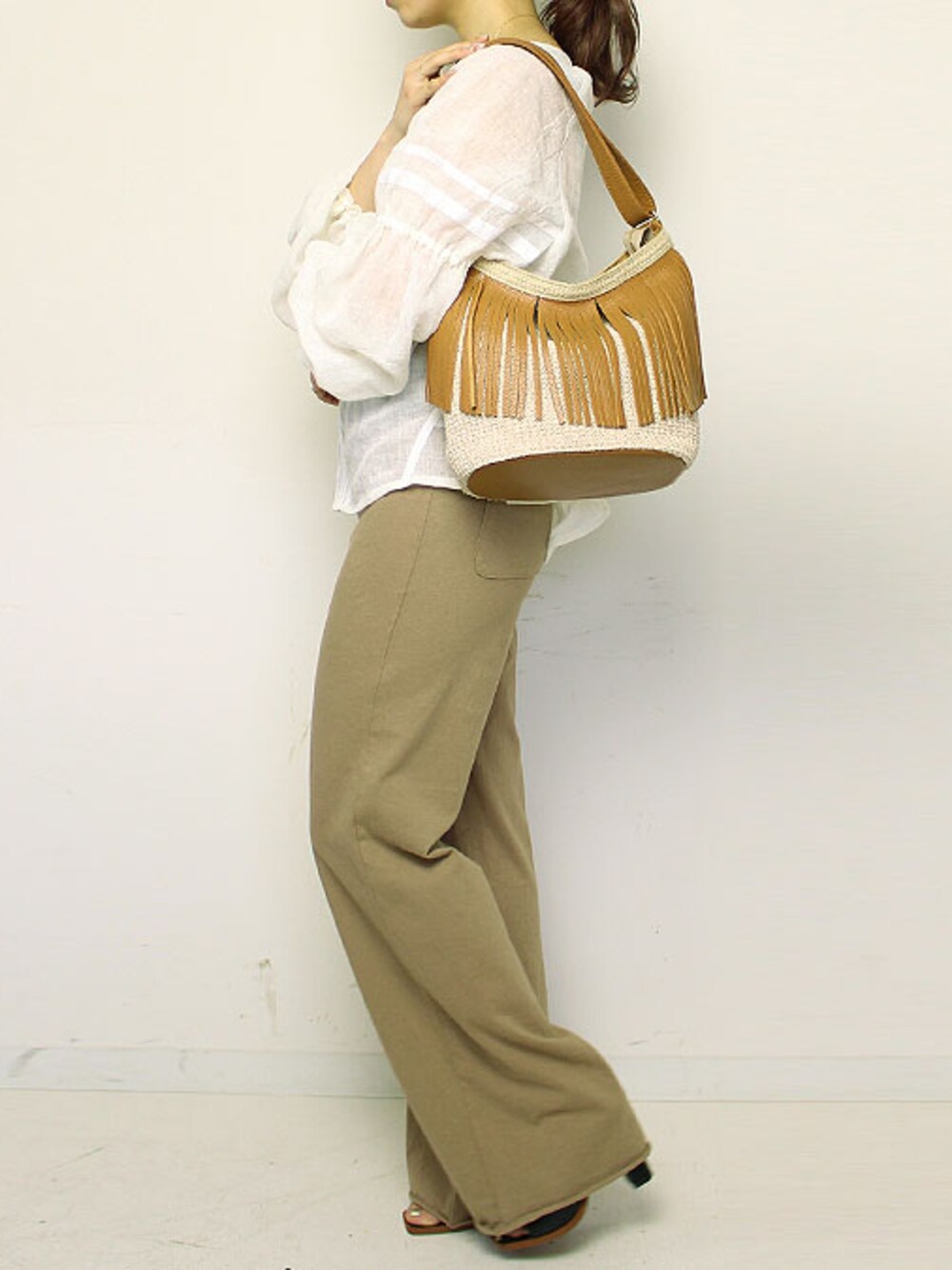 カジュアルな素材使いが魅力的な夏バッグ☆彡 ほかにはないデザイン性と機能性で、この夏買い足したい1つ♪ レザーのフリンジでトレンド感のある見た目でカジュアルに仕上げております。 ショルダーの調節の幅も効くので、お出かけだけでなくレジャーにもお供したいバッグです。 バーキンバスケットバケツ型ショルダー [REGALO(レガロ)] 販売価格: 18,144円 (税込)