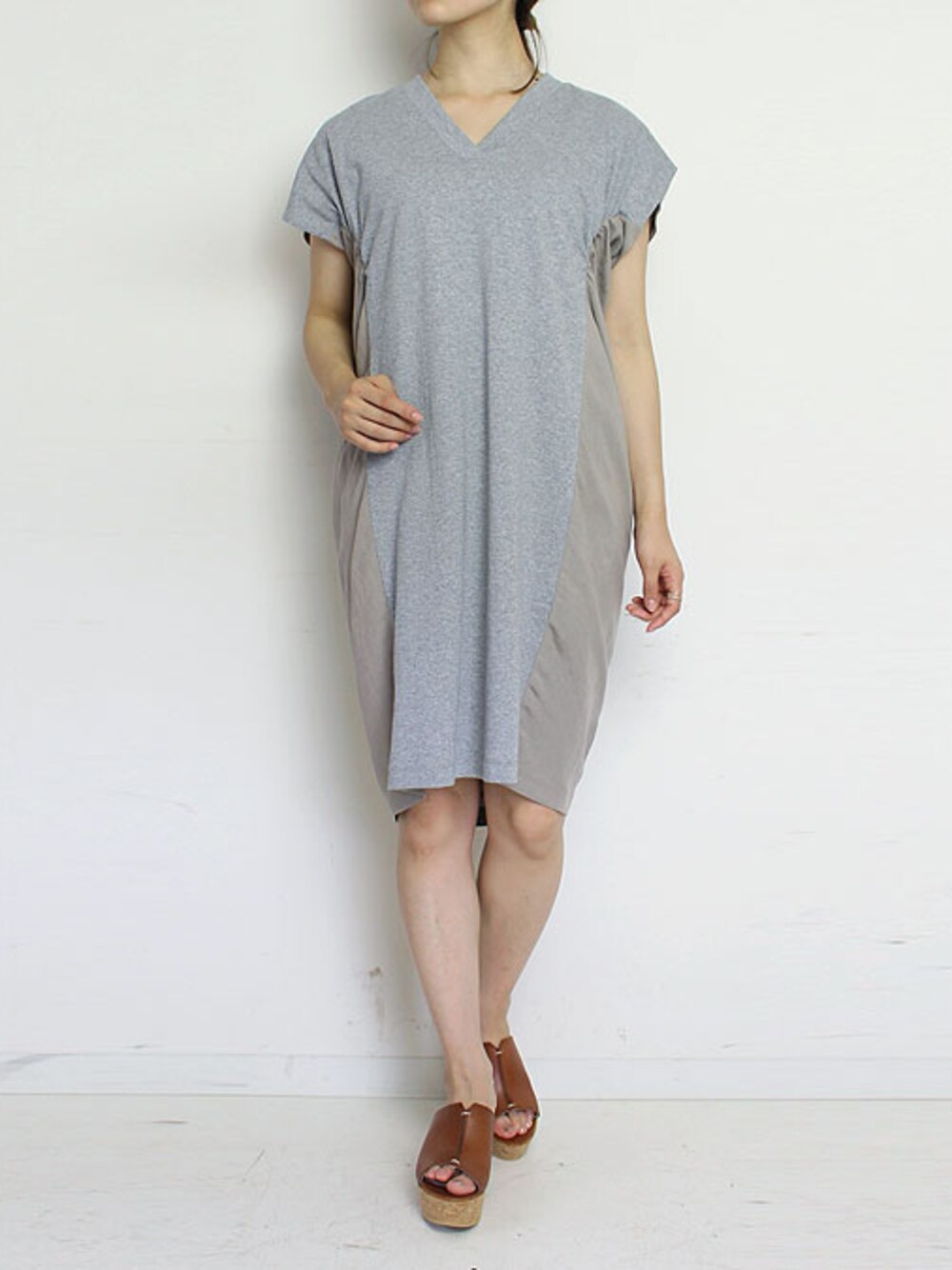 1枚でサラッと絵になるコクーンワンピース。 フロント部分はしっかりしたコットン100%、バック部分は麻を55%ミックスした落ち感のあるレーヨンを採用し、 前後で素材感とボリューム感の違いを楽しめます。 脇から袖口にかけての切り替えラインを前側にずらし、バスト付近にギャザーを入れる事によって 立体感のあるフォルムに。 Tシャツ感覚で着こなせる手軽さもうれしいですね^^ ドライコットンジャージーVネックドレス [Munich(ミューニック)] 販売価格: 16,200円 (税込)