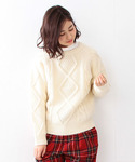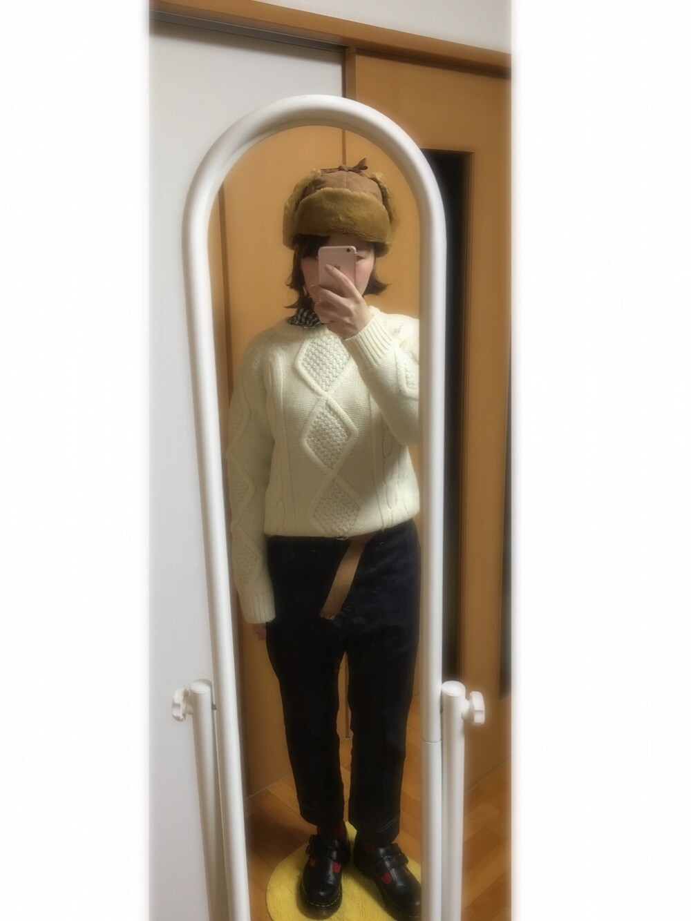 ikumiのニット/セーター「BEAMS BOY / 3ゲージ アランクルー」を使ったコーディネート