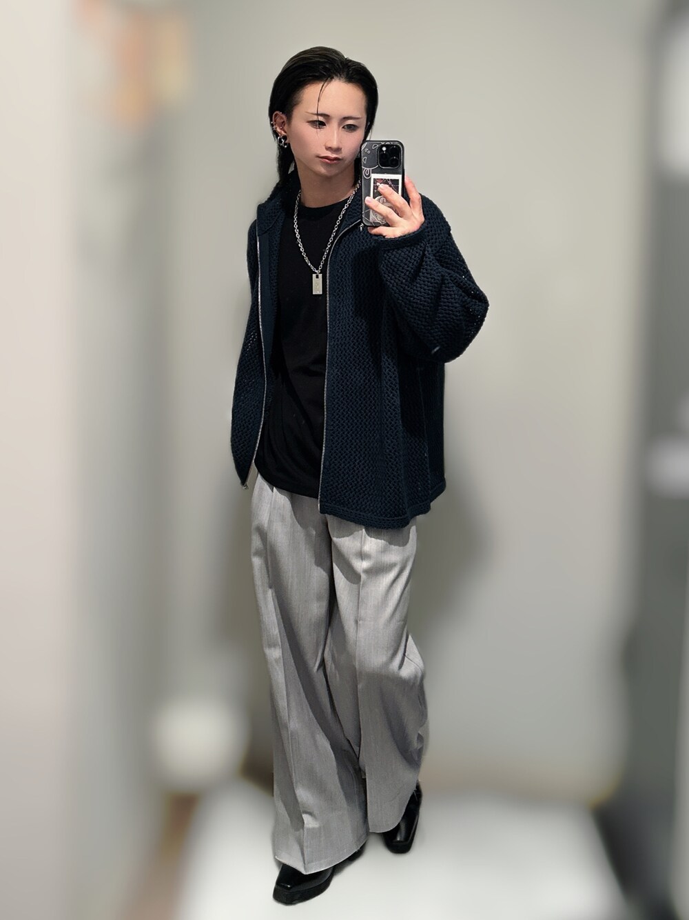 きらのニット/セーター「【CLEL】Watermark Knitting Loose Mesh Drivers Knit/透かし編みルーズ メッシュドライバーズニット」を使ったコーディネート