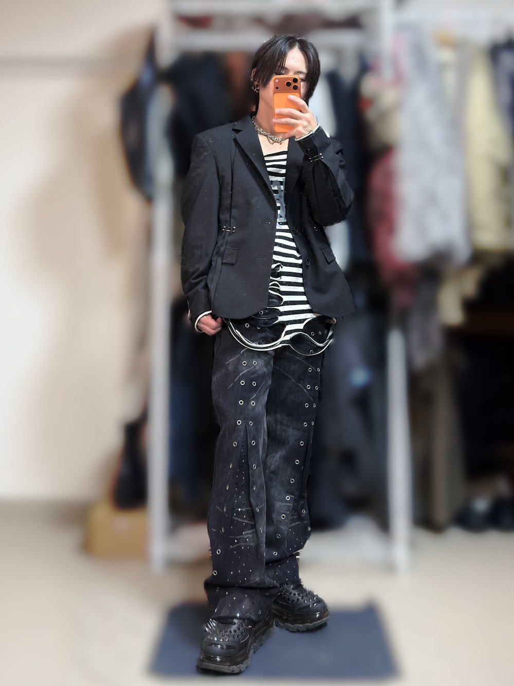 きらのデニムパンツ「【GRANCY】Crazy Design Skinny Flare Denim Pants / クレイジーデザインスキニーフレアデニムパンツ」を使ったコーディネート