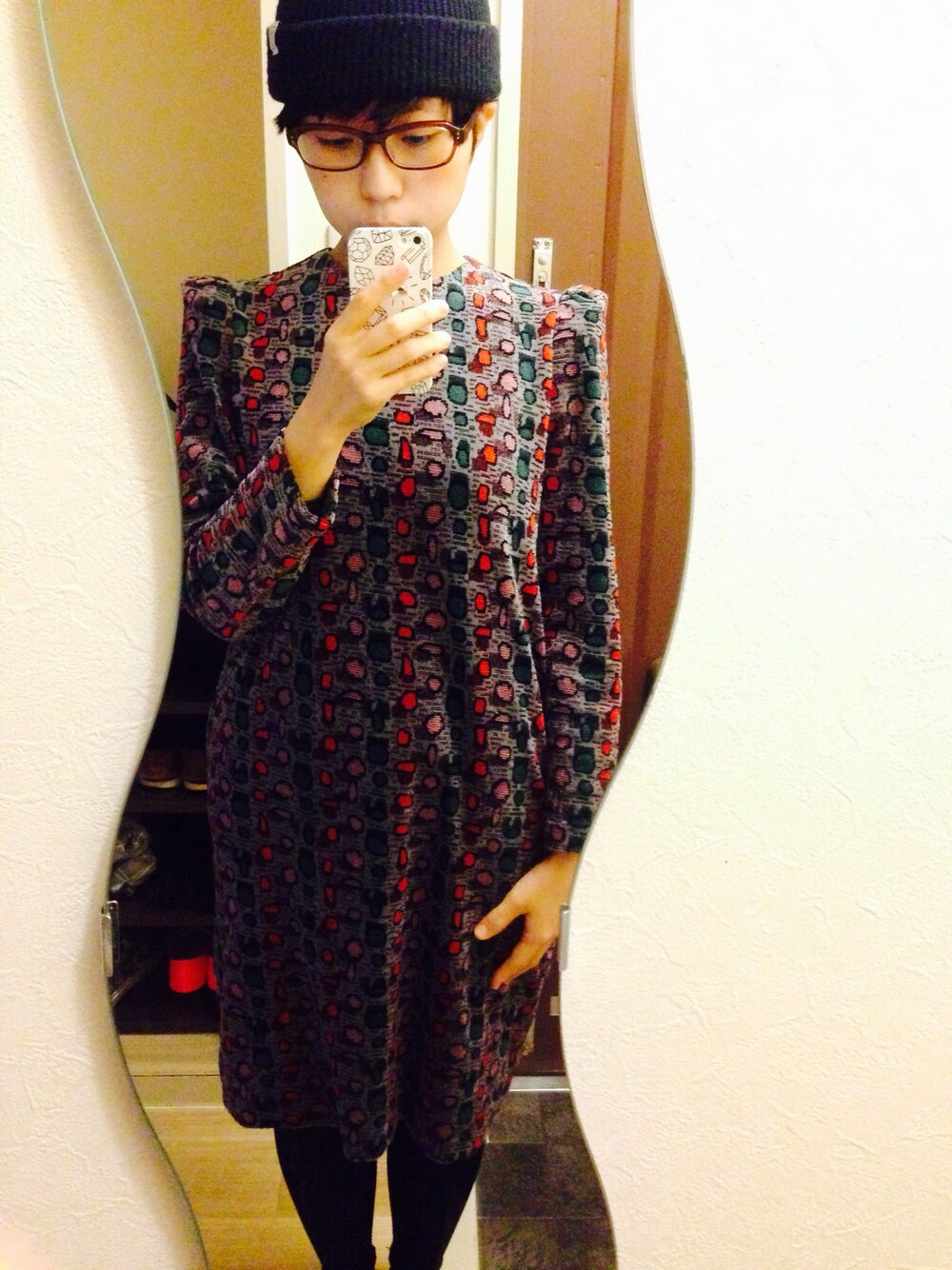 今季のマザーのワンピースおろした!肩の形が可愛くて… 眼鏡は泰八郎謹製。