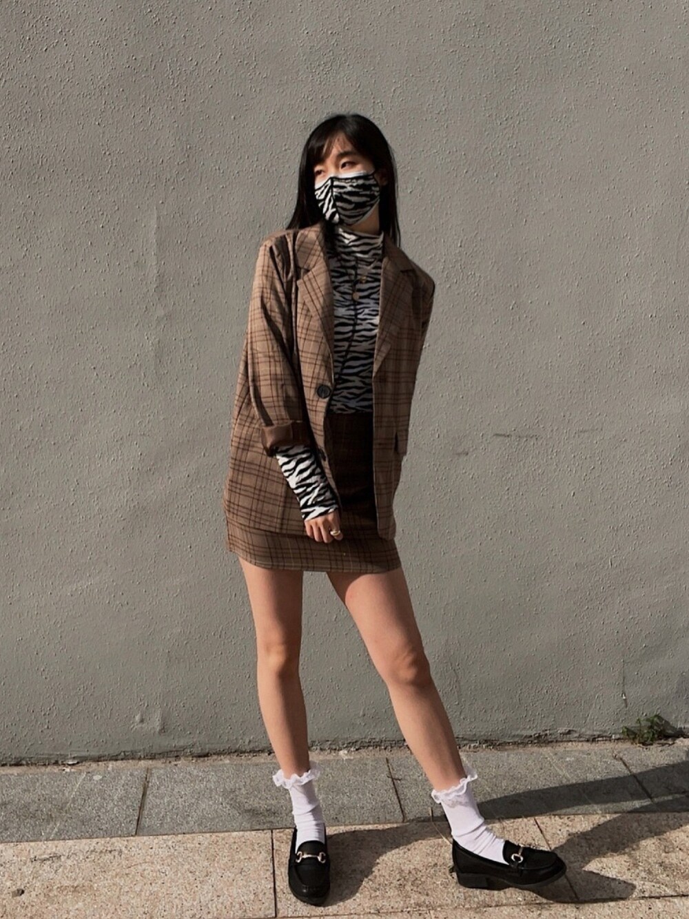 その他のその他トップス、ブラック系のローファー、ブラック系のその他を着用したレディースの春コーディネートの1枚目の写真