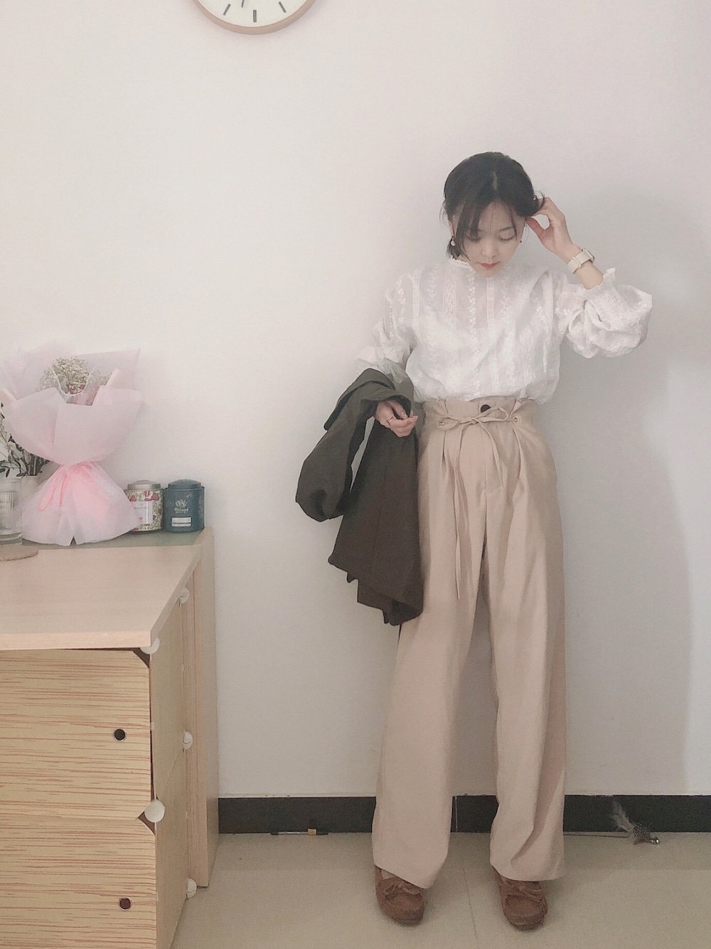 枪枪のその他パンツ「サテンハイウエストダブルパンツ/セットアップ」を使ったコーディネート