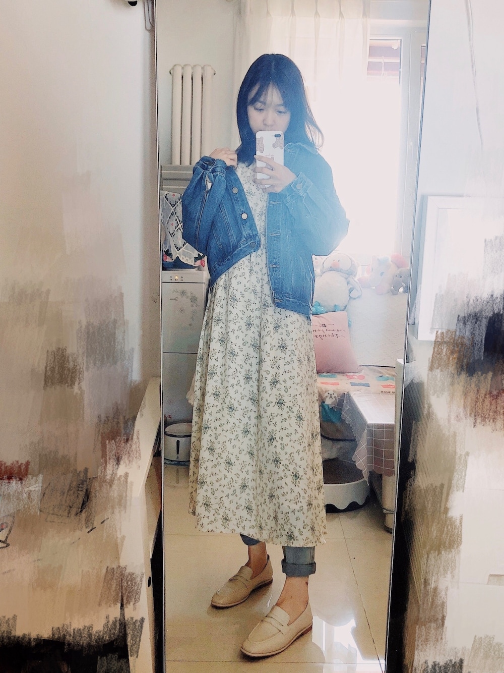 ブルー系のその他アウターを着用したレディースの春コーディネートの1枚目の写真
