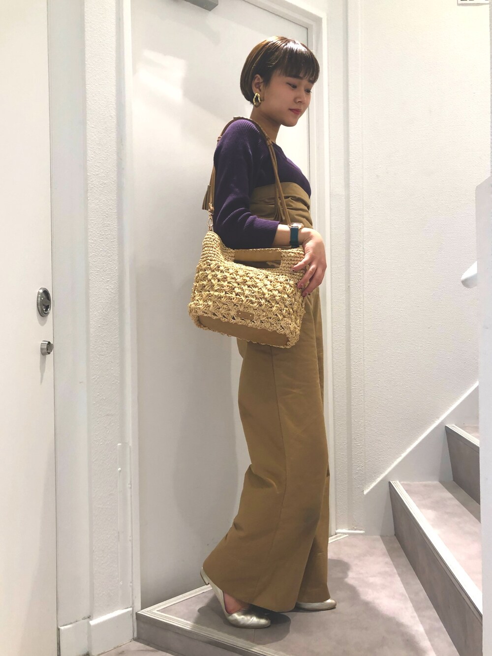 過去コーディネートup 人気のラフィアショルダー! お出かけできるようになったら旅行に持っていきたい、、