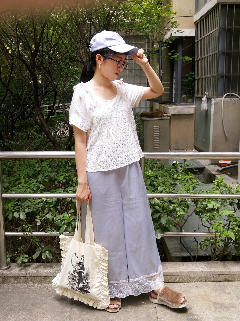2017.08.16 code lace vest --- olive des olive pants --- merry jenny shoes --- niko and bag --- axes femme hat --- GU earrings --- forever21