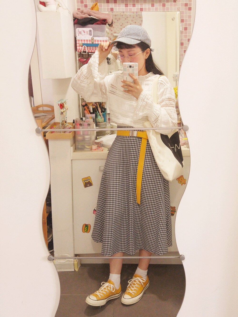 2018.05.01 code lace shirt --- w closet dress --- GU belt --- GU shoes --- CONVERSE bag --- forever21 hat --- zara