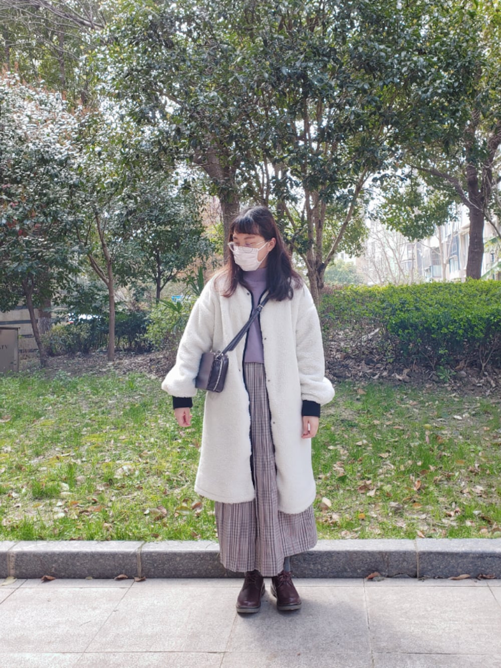 2020.03.12 code coat --- GU sweater --- w closet dress --- ehka sopo shoes --- shimamura bag --- lowrys farm