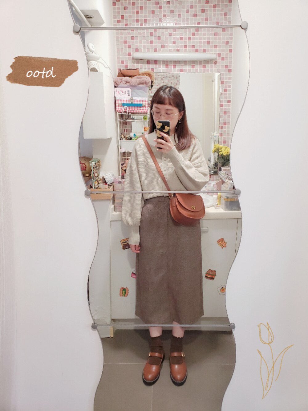 2020. 10. 24 code T shirt --- mysty woman knit --- lowrys farm dress --- ehka sopo socks --- tutuanna shoes --- studio clip bag --- old coach