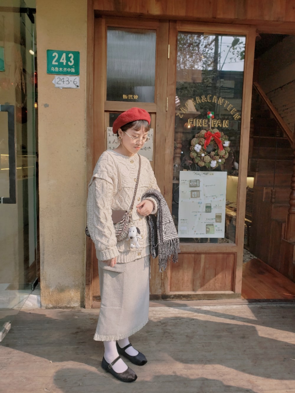 2020. 12. 24 code knit --- freak's store dress --- select moca shoes --- padourouge bag --- heather earrings --- cotti cotti
