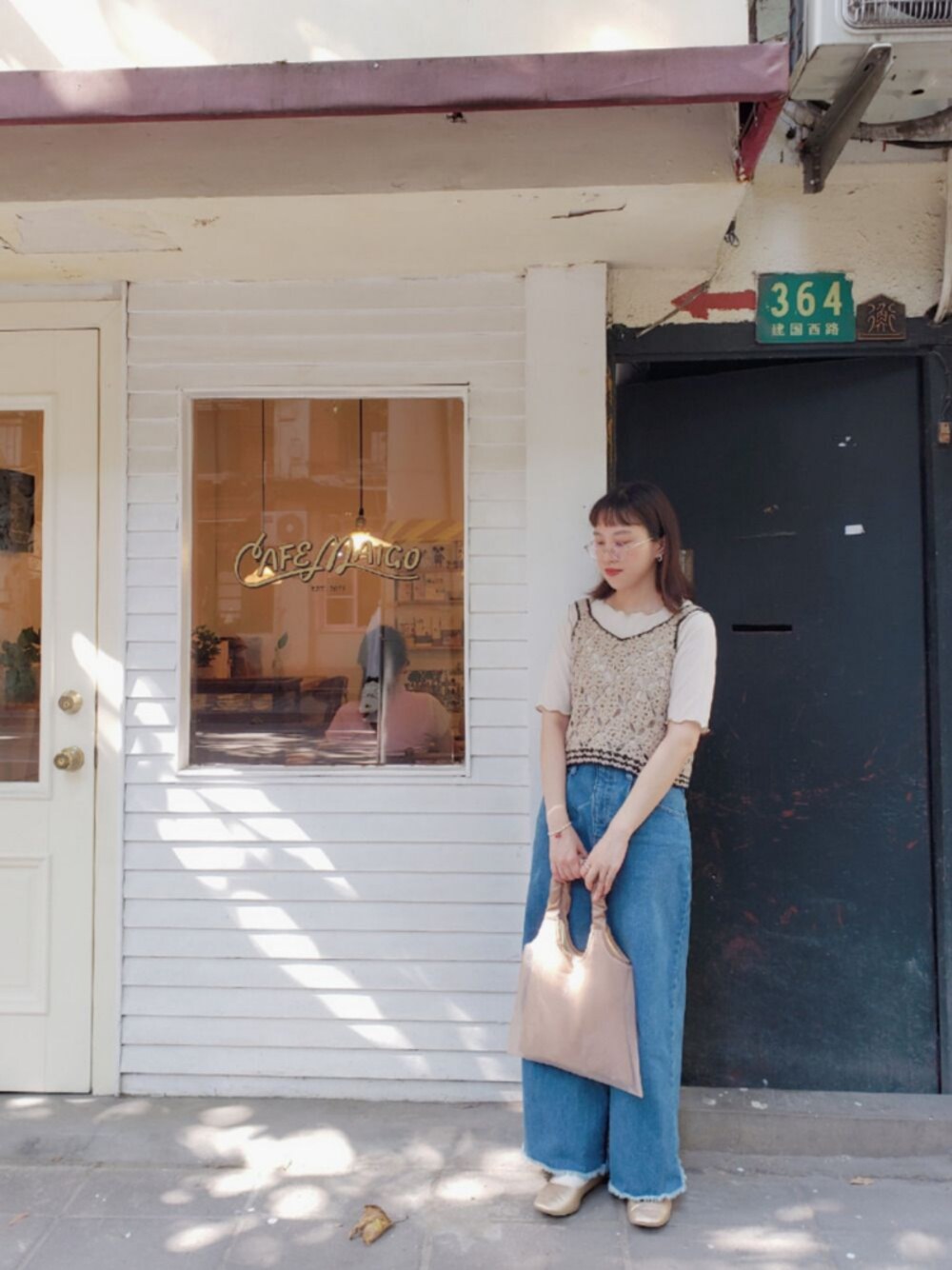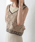 evenのベスト「クロシェ編みニットビスチェ」を使ったコーディネート