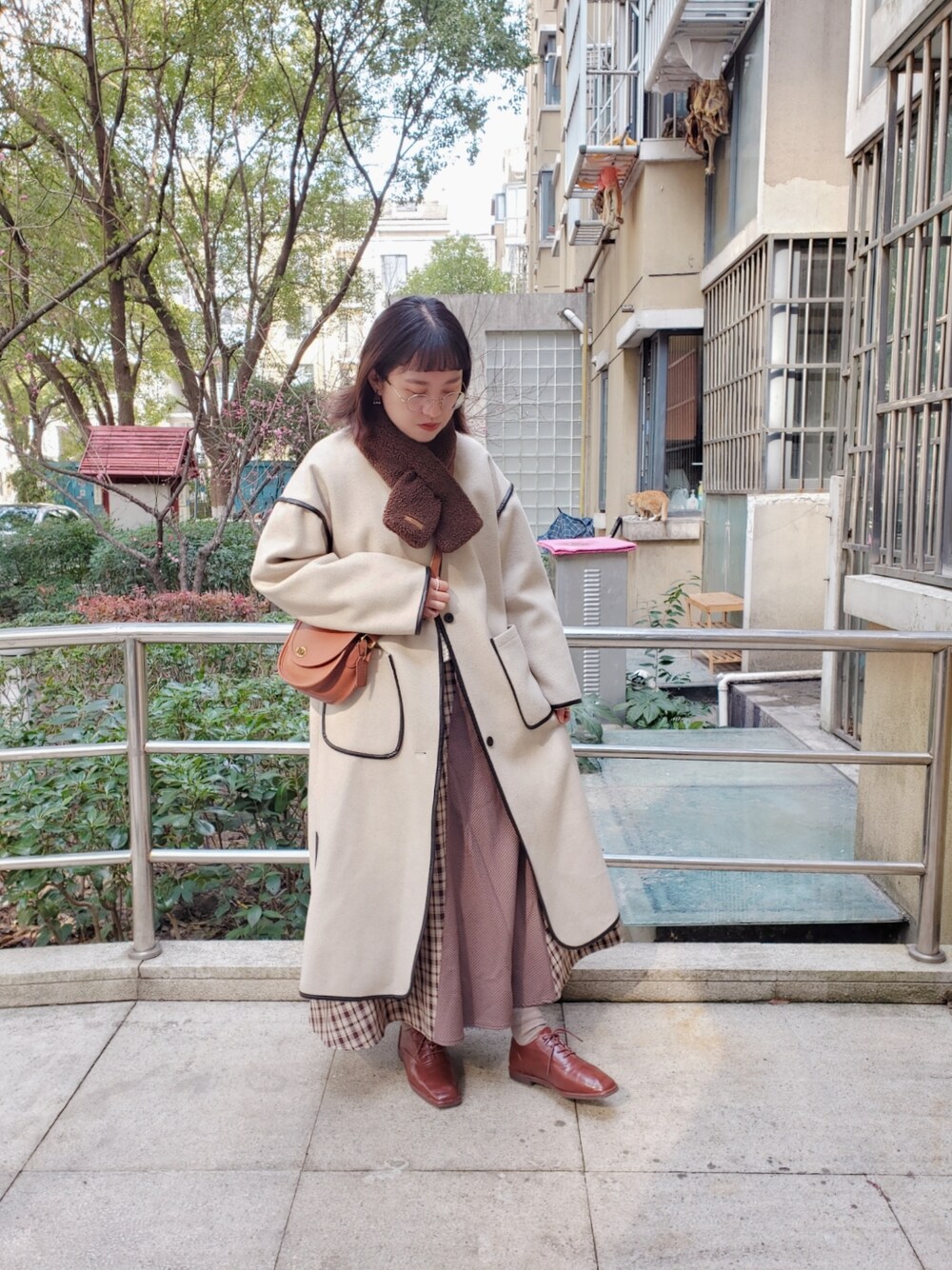 evenのダウンジャケット/コート「ノーカラーパイピングロングコート」を使ったコーディネート