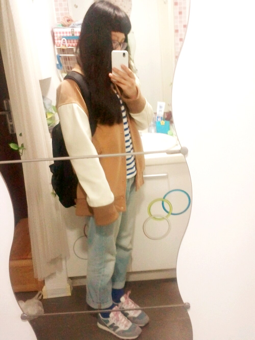 2015.03.21 code jacket --- lowrys farm sweater --- GU jeans --- GU shoes --- new balance bag --- addidas