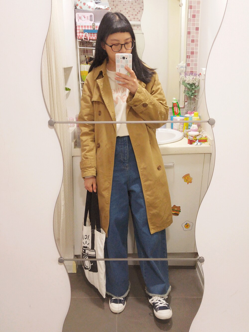 evenのトレンチコート「ロングトレンチコート」を使ったコーディネート