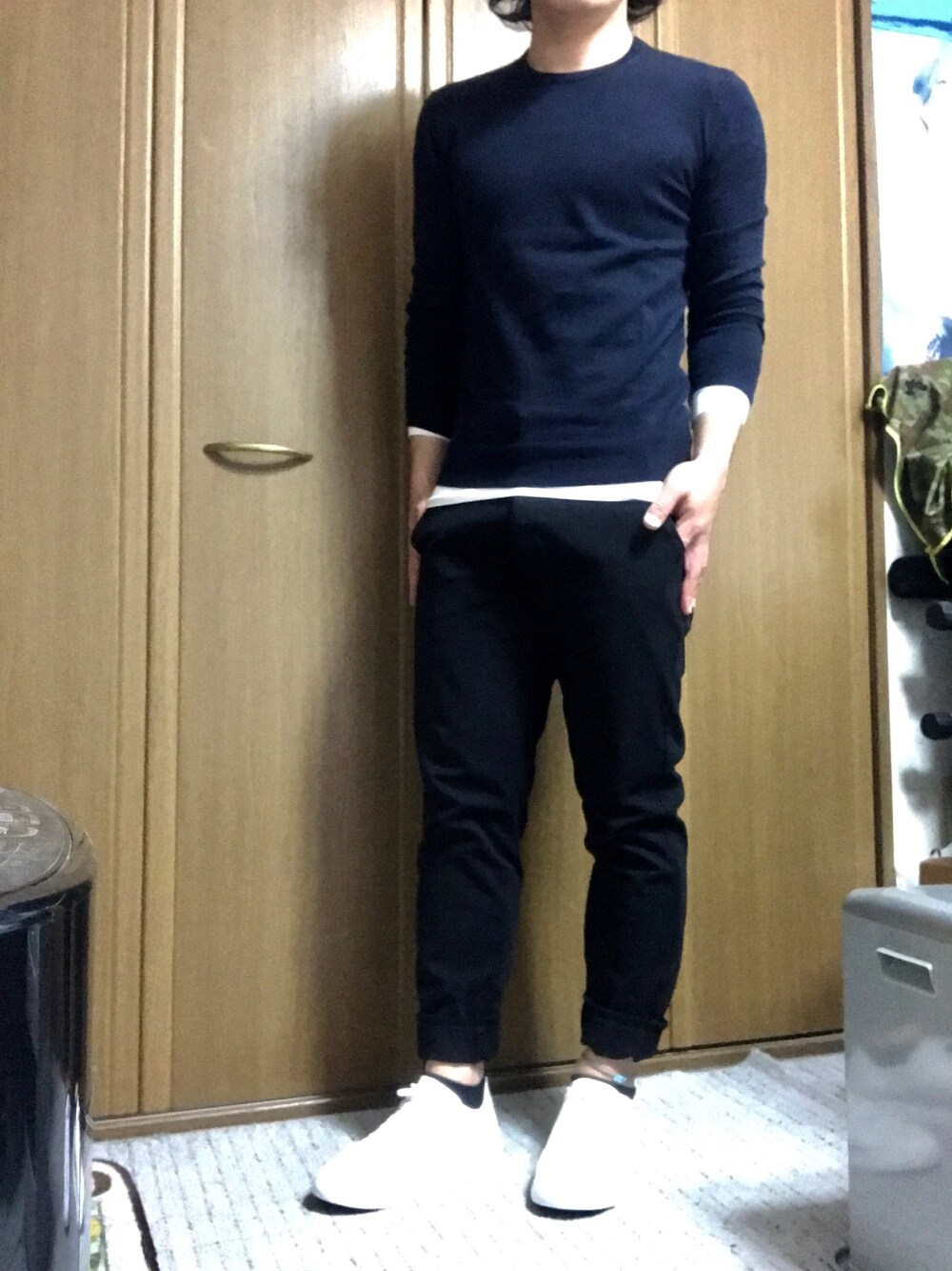 春コーデ、オールUNIQLO UNIQLOにて春用に洗えるニットと軽量スニーカーを購入。 全てUNIQLOでかなりシンプルにコーデしました。 ウォッシャーブルクールネックニット ネイビー ジョガーパンツ ブラック ニットライトスニーカー ホワイト