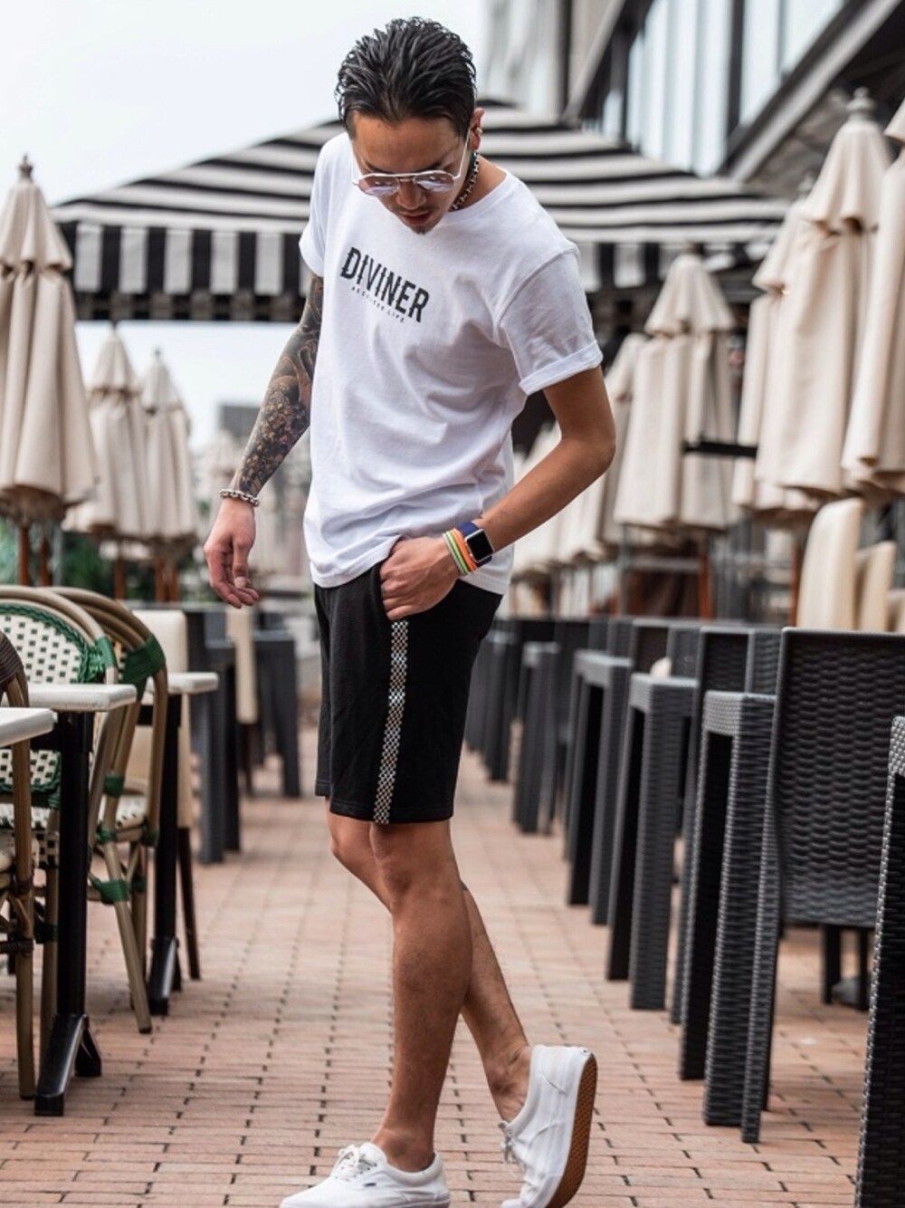 定番でもある DIVINERのロゴTシャツ♪ 胸元のロゴのインパクトもあって、 幅広いスタイルに、合わせやすくて もってこいのアイテムです。 今回は、ショーツを夏っぽく着用しました♪ 18709
