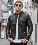 jokerスタッフ(joker)のライダースジャケット「リアルレザーシングルライダースジャケット 本革 革ジャン 革ジャケット メンズ 春服 冬服」を使ったコーディネート