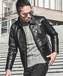 jokerスタッフ(joker)のライダースジャケット「リサイクルレザージャケット メンズ 本革 レザージャケット アウター スイングトップ」を使ったコーディネート