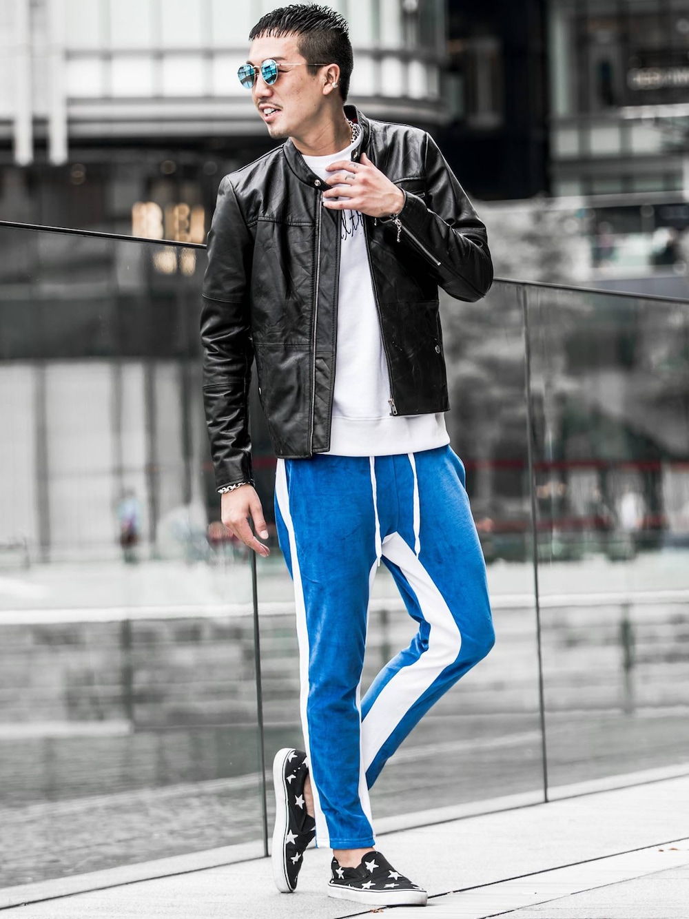 いつも、いいねや、フォローありがとうございます!! ※本日は、ラインベロアパンツの、紹介です。 ラインパンツは、ストリートや、カジュアルスタイルに、 最近トレンドのアイテムで、注目されています。 街で着用している、方を良く見かけると思います。 今回は、そのトレンドコーデの着こなしをテーマにしていきたいと思います。 今回のコーデ、ポイントはバランスを意識して、コーデしました。 アウターのシングルライダースはジャストサイズで着用し、 インナーのトレーナーはアウターから、はみ出るぐらいに着用して パンツはタイト目に着用!、足元で柄物のスニーカーをON! 最近では、パンツをラフに履くコーデが増えてきています! コーデ全体のバランスは第一に重要点で、後はアイテムの色味、サイジングがキモ となります。 こういった、外でも履けるラフなパンツのコーデが今は トレンドとして注目されている為、押さえておきたいですね♪ ※ SNS - instagram ___YUUUKI___ -Twitter Yuuuki@DIVINER_JPN こちらも、まめに更新しております。宜しくお願い致します。