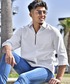 jokerスタッフ(joker)のシャツ/ブラウス「【JOKER】スキッパーシャツ メンズ 7分袖シャツ 綿 コットン カプリポロシャツ ストライプ 無地 ホワイト 春服」を使ったコーディネート