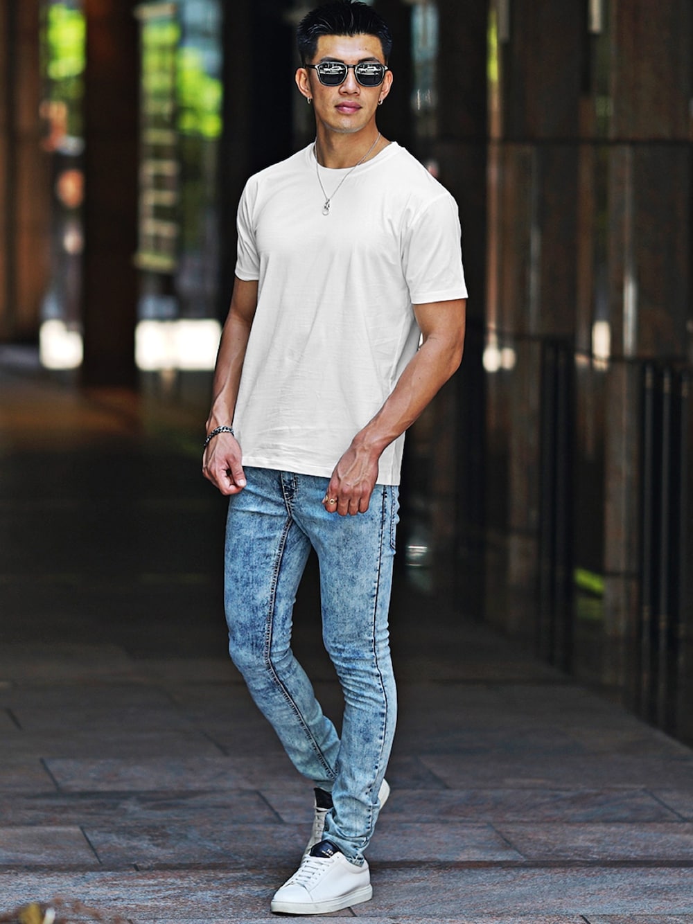『むっすー : 180cm/76kg 筋肉質体型』 いつも、いいね♡フォロー👍 ありがとうございます🤗 ■この着心地最高級。 体のラインに沿ったスマートなシルエットのTシャツに、細身のスキニーデニムを合わせたノームコアコーデ。 ハイブランド同等の生地を採用した、シンプルな無地Tシャツは最高級の着心地を感じさせてくれます! すらっとしたボディラインが強調されるIシルエットコーデで、この夏を全力で楽しもう!