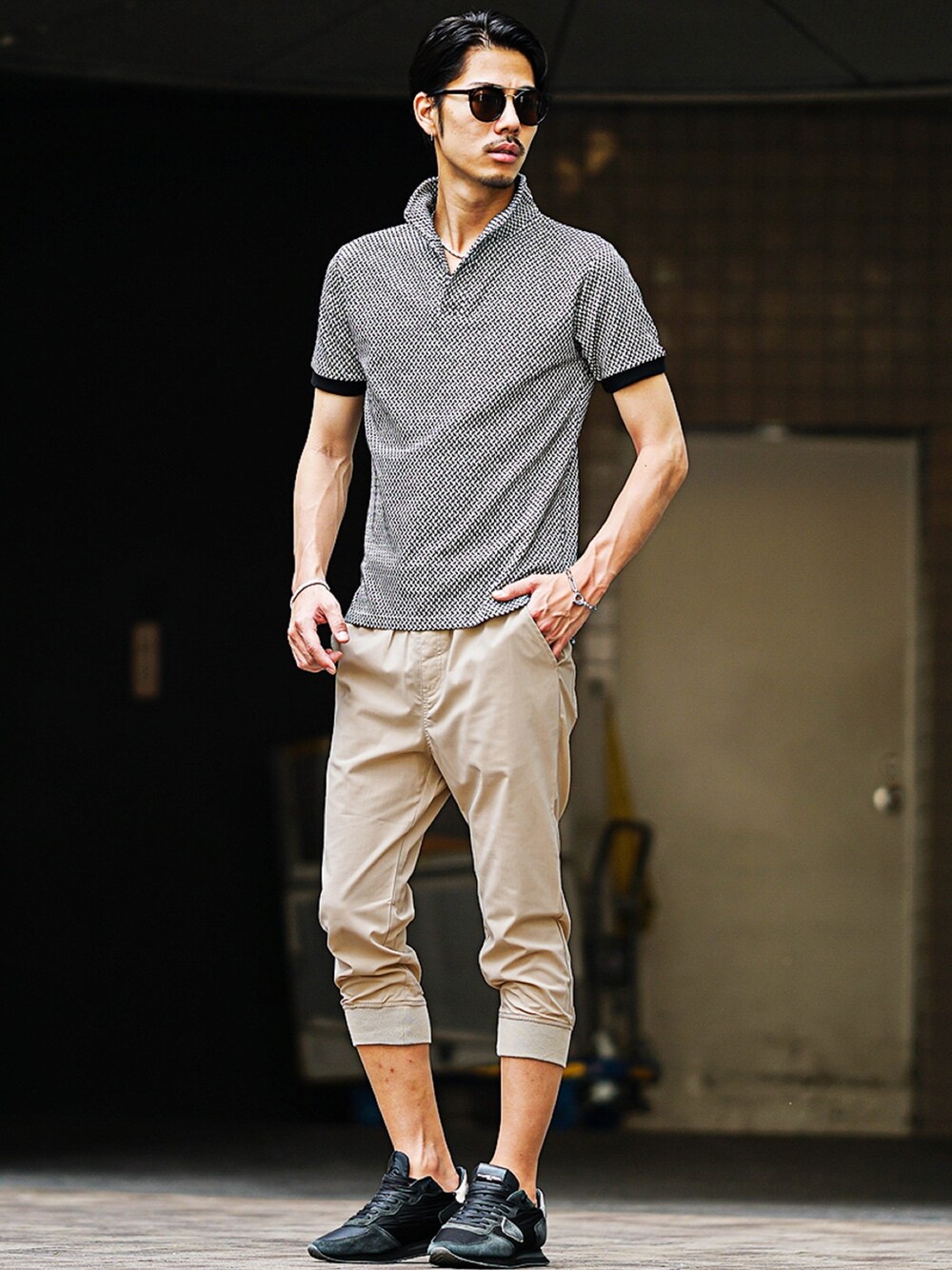 『180cm/65kg スッキリ細身体型』 いつも、いいね♡フォロー👍 ありがとうございます🤗 ■夏感漂うオトナコーデ 立ち襟が際立つ総柄のポロシャツと、スポーティ且つ夏感漂うクロップドジョガーパンツを合わせたコーデ。 ボディラインがキレイに見える細身シルエットの組み合わせだからこそ、オトナの色気を感じさせる。 総柄が際立つことで、無地ライクなスタイルとの差別化になり、あなたにしかできないコーデになります。 いつもとは少し違った装いをチャレンジしたい方にオススメです!