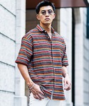 jokerスタッフ(joker)のシャツ/ブラウス「ネイティブ柄半袖シャツ ビッグシルエット オーバーサイズシャツ 総柄 ボーダー トップス 春服」を使ったコーディネート