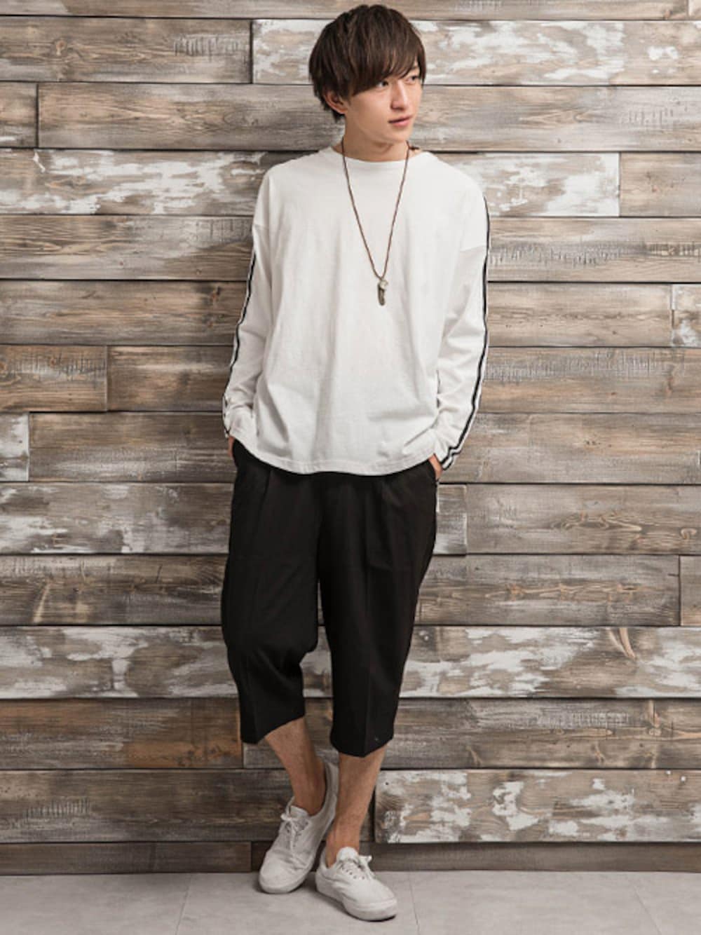 ここ数日アツい・・・夏キテル!! ロンTは袖ラインがイイ◎ パンツは接触冷感のイージーワイドパンツです★ ルーズ過ぎず、ホントに絶妙なワイド感ですよ! ★★★★★★★★★★★★ 着用サイズ:Mサイズ ★★★★★★★★★★★★