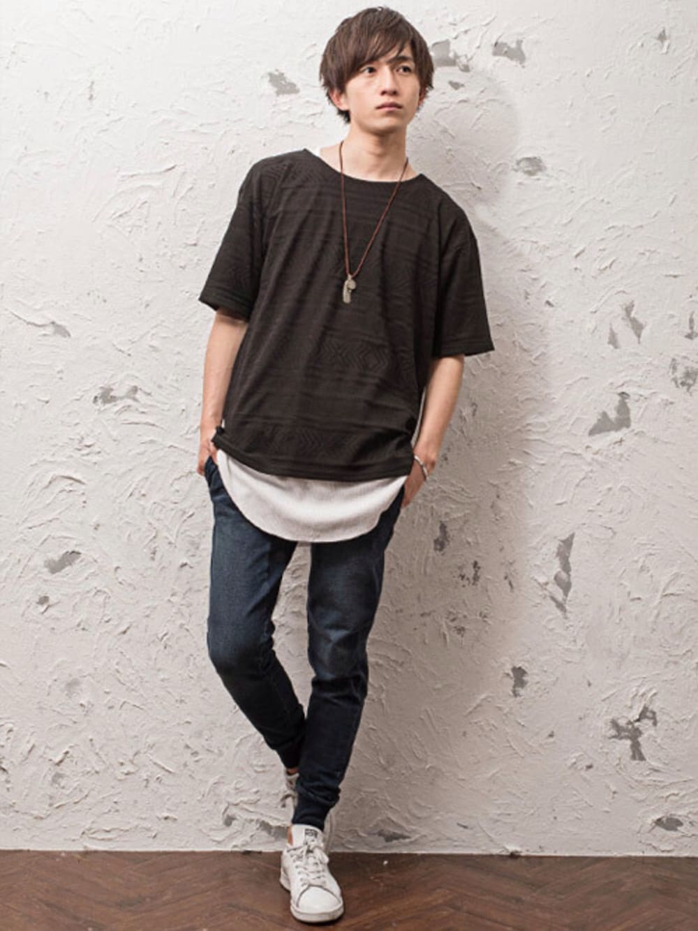 REONのTシャツ/カットソー「ジャガードビッグTシャツ ロングタンクトップ 2点セット アンサンブル」を使ったコーディネート