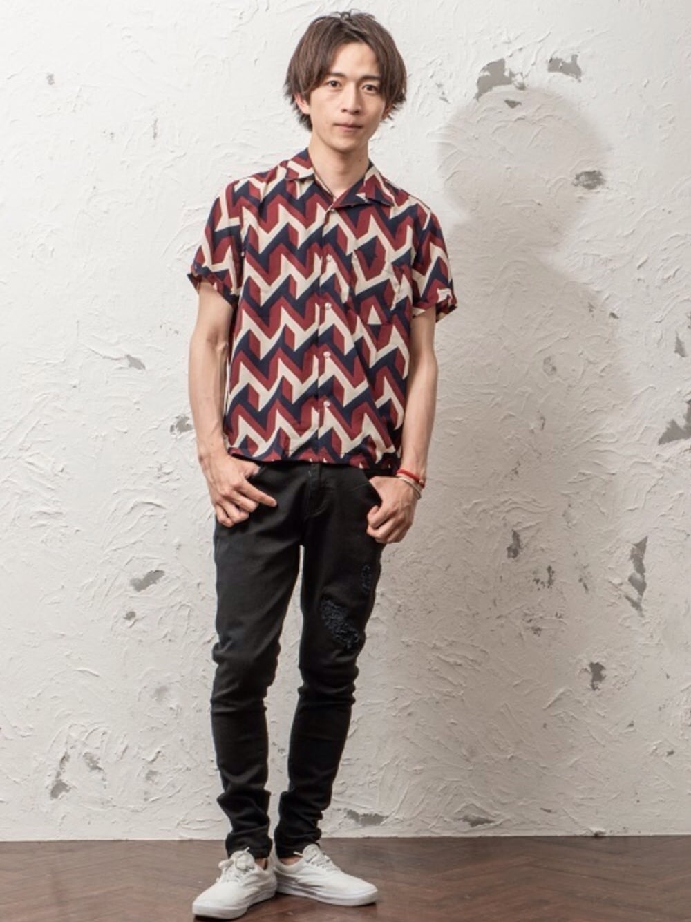 REONのシャツ/ブラウス「総柄プリントオープンカラー半袖シャツ ストライプ 開襟」を使ったコーディネート